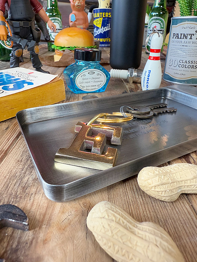昔、こういうイニシャルグッズって、あちこちで見かけたものですが、そんなロングセラーアイテムを真ちゅうで豪華に仕上げたオリジナルキーホルダーです。