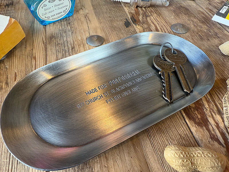 マネートレイをはじめ、ペンなどを置いておくステーショナリートレイ、さらに帰宅時の小物やアクセサリーのキープにも便利なスチール製のオーバルトレイです。