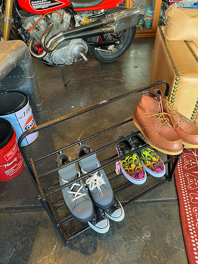 男ゴコロくすぐるインダストリアルテイストで、今人気急上昇中のブランド、「ポストジェネラル」から、ハンマートーン塗装仕上げの無骨なシューズラックが届きました!