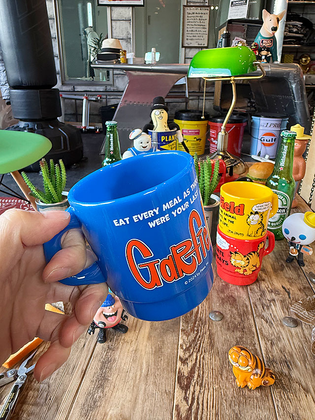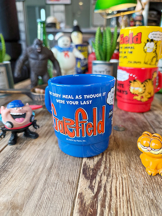 昔懐かしのキャラ、ガーフィールドがデザインされたスタッキングマグです。