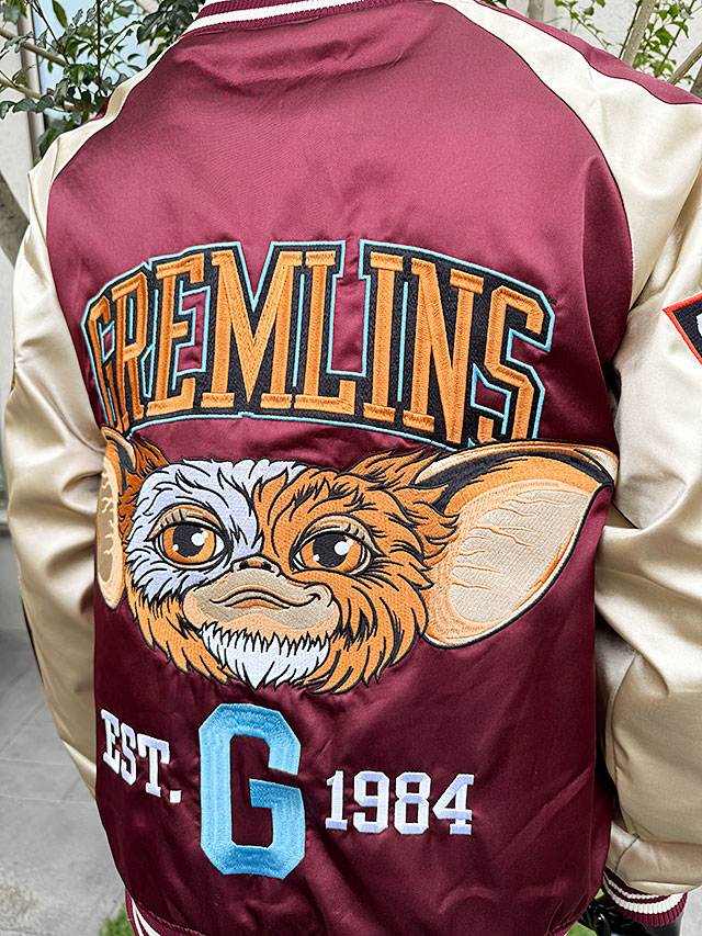 カレッジチームのジャケット風にデザインされたフォントや、映画が公開された年の84の数字、背中にはギズモのビッグフェイスと、らしさ満点の見た目になってます。