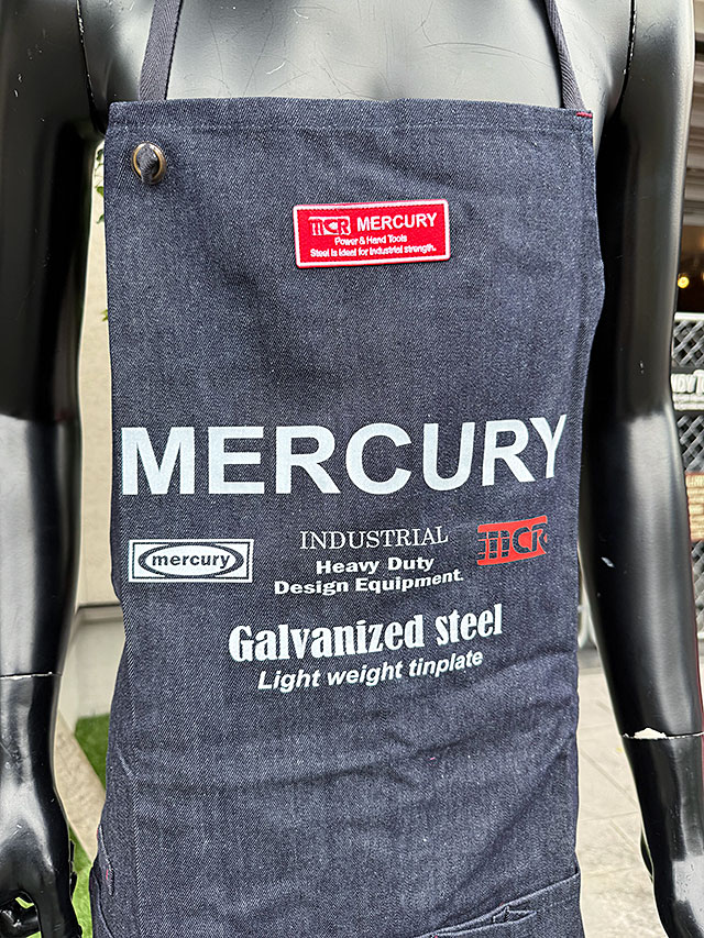 インダストリアル系が好きな人たちから支持されるアメリカンブランド「マーキュリー」からリリースされたデニム生地のワークエプロンです。