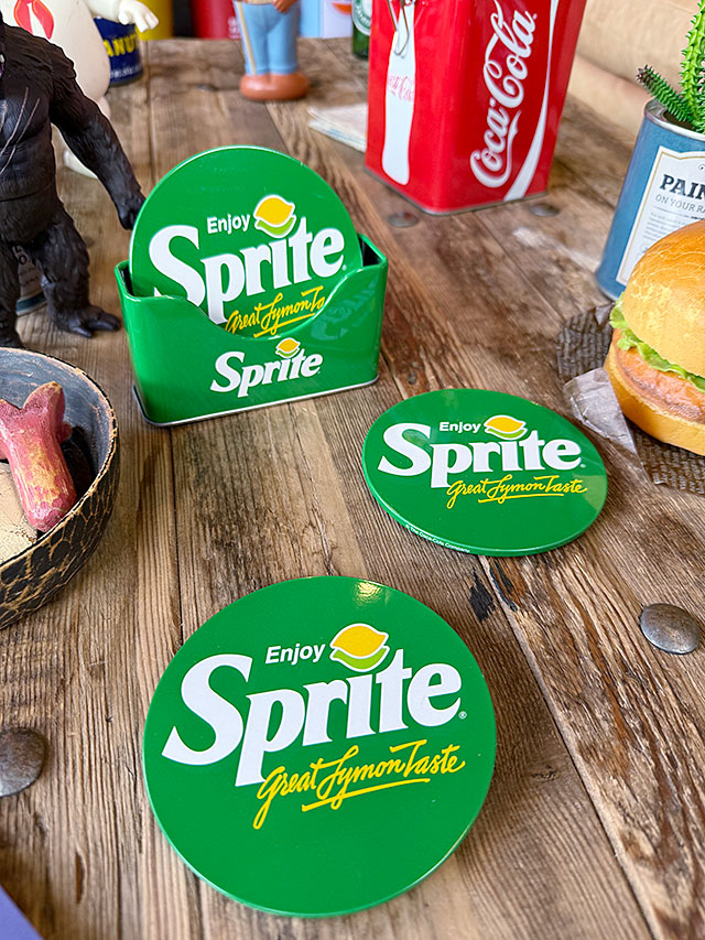 コースターを収納しておくお揃いのトレイもセットになってるので、使ってない時でもスプライトがテーブルを演出してくれて、ダイナーの雰囲気バツグンです!
