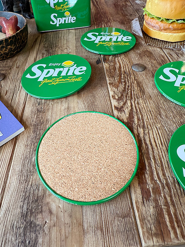 で、「オレは断然スプライト派だった!」って人のために用意されたのが、スプライトロゴ入りのブリキ製コースター(6枚セット)です。