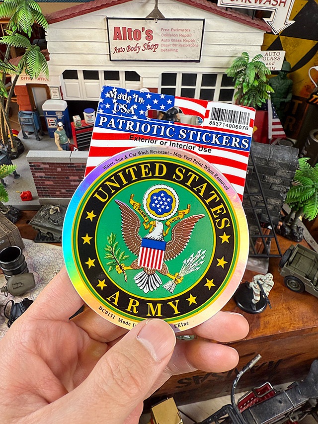 身の回りにある小物に貼るとオリジナルのミリタリーグッズが完成しちゃうというミリタリー系好きには嬉しいステッカーをアメリカで見つけてきました!