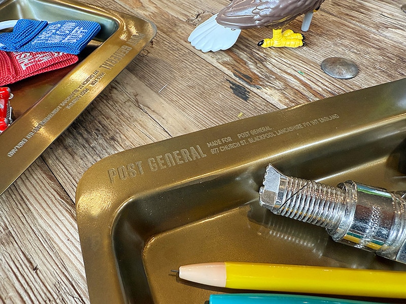 鉄の素材感をそのまま活かして、ヴィンテージのマネートレイの風合いに仕上げた、ポストジェネラルお得意のテイスト!