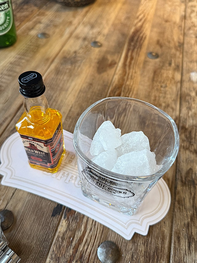 ロックアイス風の天然石をグラスに入れて、そこへミニボトルでウイスキーを注ぐように、オイルを数滴を垂らすと・・・・
