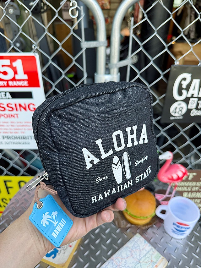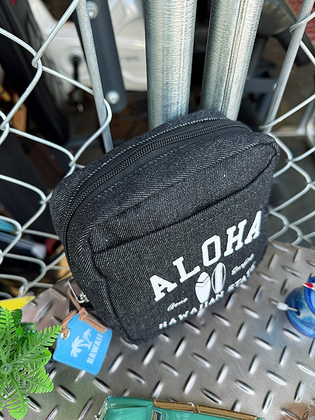 ハワイアン スクエア デニムポーチ タグ付き (ブラック)