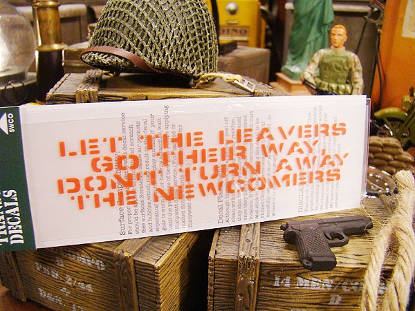 ことわざステンシル転写ステッカー (去る者は追わず来る者は拒まず)