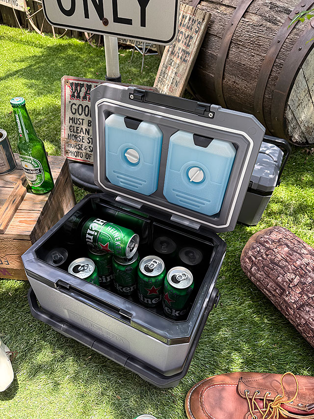 クーラーボックスには欠かせない「保冷剤」を、最初からフタの裏面に装備していて、効率的に庫内を保冷してくれるんです。