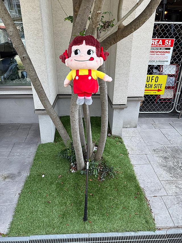 キャディバッグから飛び出したペコちゃんは、まるで相棒のように一緒にお供してくれる存在!