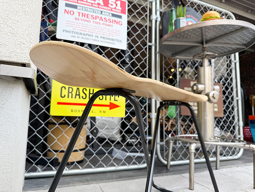 スケボーデッキをそのままチェアーにしたっていうユニークなヤツです。