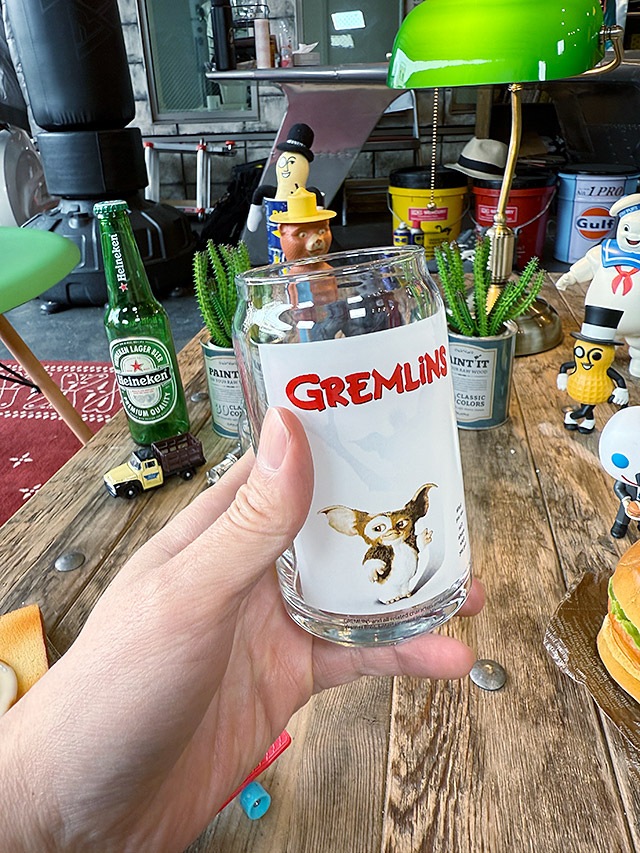 ギズモの名作ポスターがプリントされた缶型グラスです。