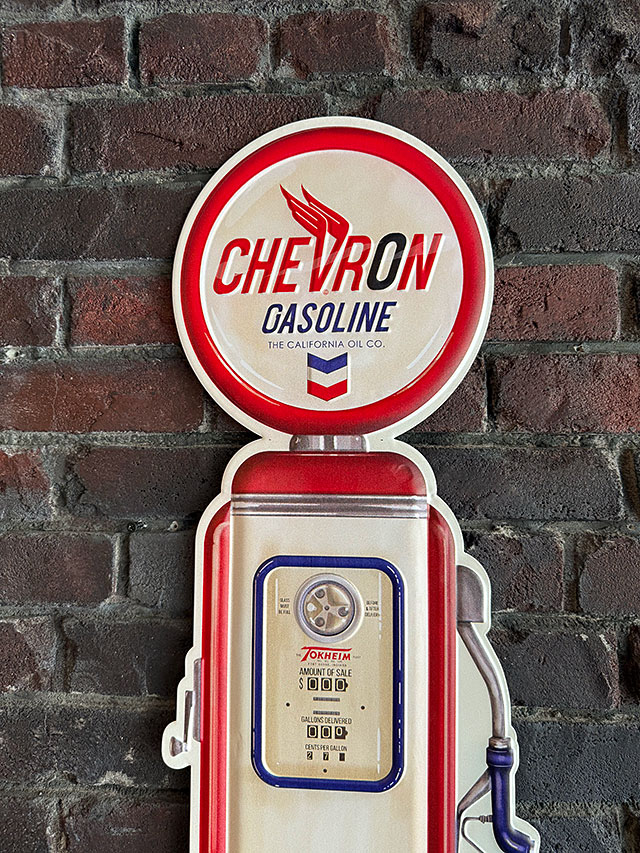 看板にしてみても、やっぱりこのガスポンプって、クルマ好きのシーンを盛り上げてくれるんだよなー