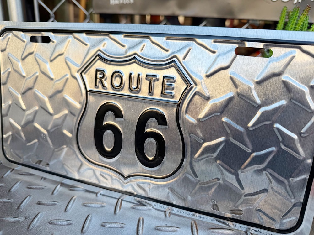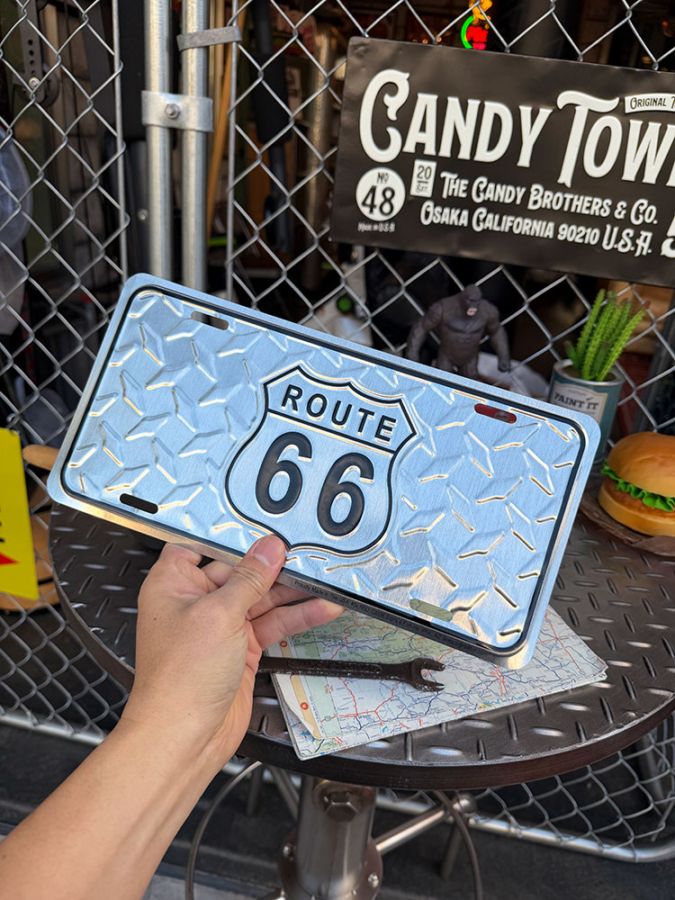 ルート66 ライセンスプレート (シールドシェイプ/シルバー/鉄板模様)