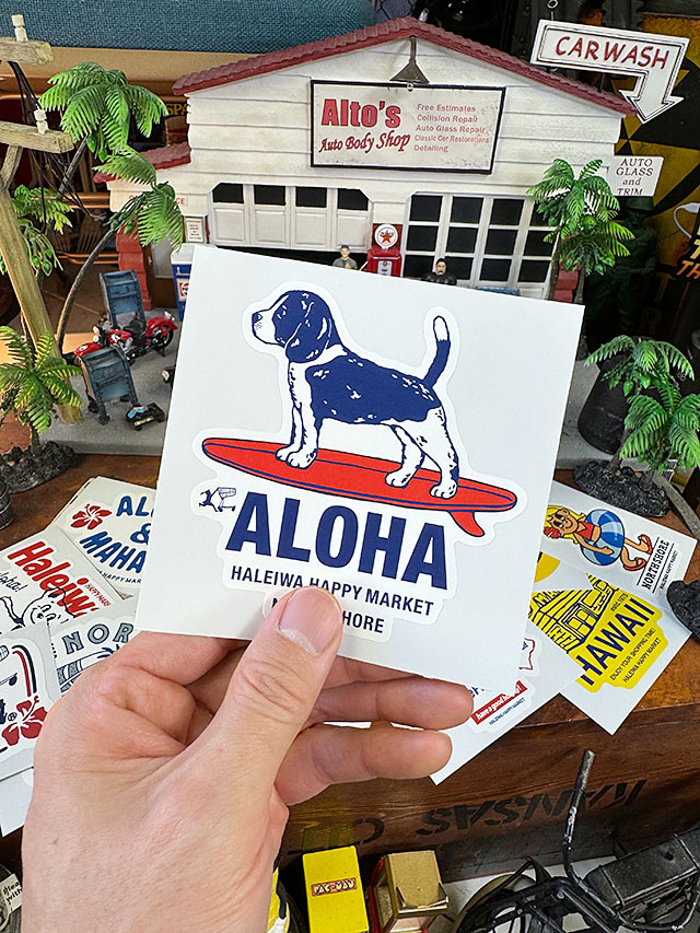 ハレイワ ハッピーマーケット ステッカー Lサイズ (サーフライダードッグ/2401Q)