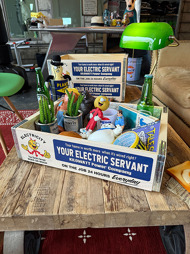 コーラやソーダ飲料がまだ瓶に詰められて出荷されてた1950年代頃、このソーダ木箱に詰め込まれて、それをトラックで全米に配達して回ってたんです。