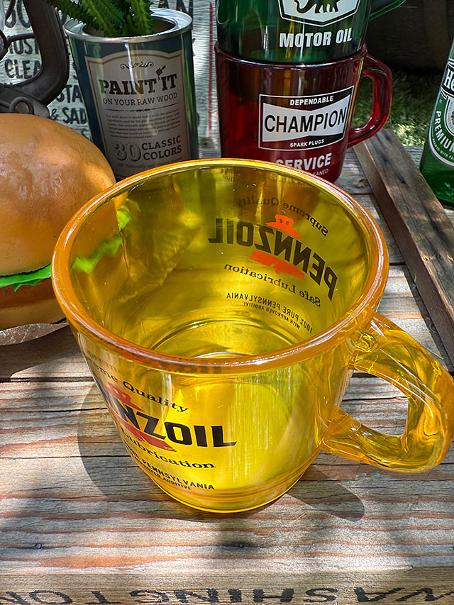 アメリカのメジャーオイルメーカー、「ペンズオイル」のロゴがデザインされたスタッキングマグです。