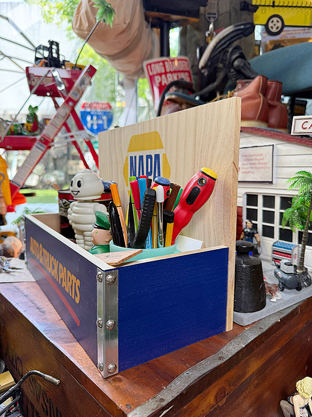 USモーター企業のロゴ入りなので、宣伝看板を飾る感覚で、小物入れを設置できるの!