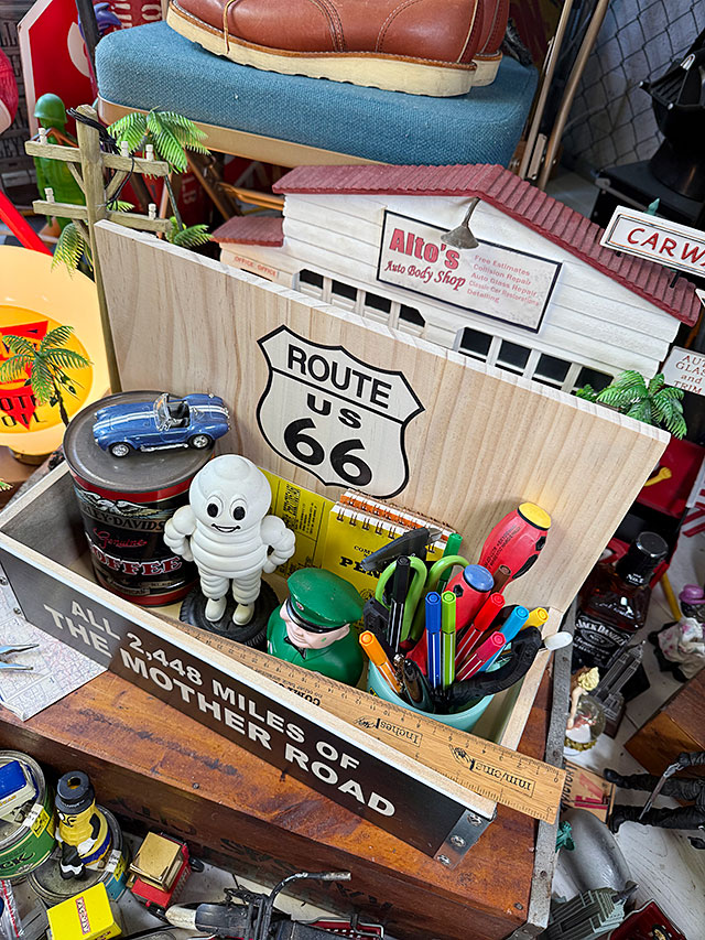 ルート66のロゴ入りなので、66の看板を飾る感覚で、小物入れを設置できるの!