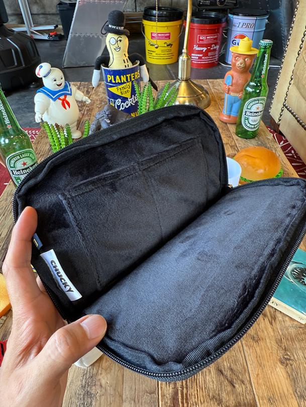 見た目はこんなだけど、ケース自体はオフィシャル物だけにしっかりと作られていて、中はフカフカ仕様でキズと衝撃から守ってくれるし、内ポケも装備してたり、チャッキーロゴのタグが付いてたりと、凝った作りになってます。