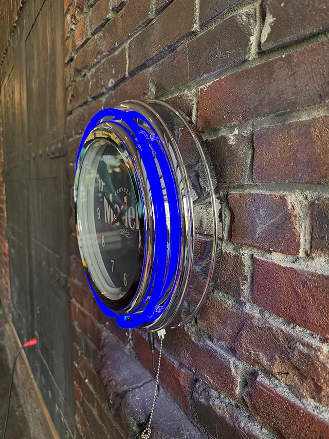 時計部分は電池式なので、ネオンを消した状態でも問題なく作動するし、ネオンを付けていない状態でも絵になる見た目なのも人気の理由です。
