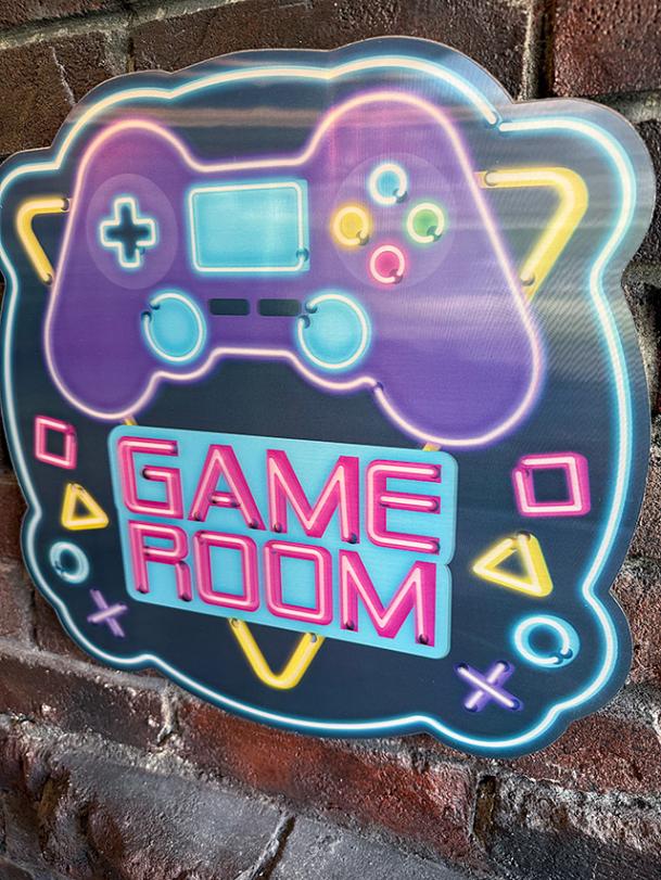 「ゲームをして遊ぶ専用ルーム」をテーマに、電飾サイン風の看板で再現したってユニークな逸品!