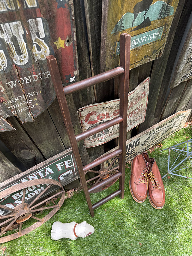 ハシゴとしての本来の機能は捨てて、ディスプレイに特化することで、スリムで味わいのあるヴィンテージ風のラダーに仕上がりました。