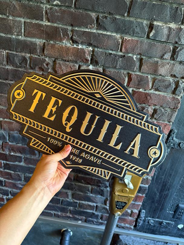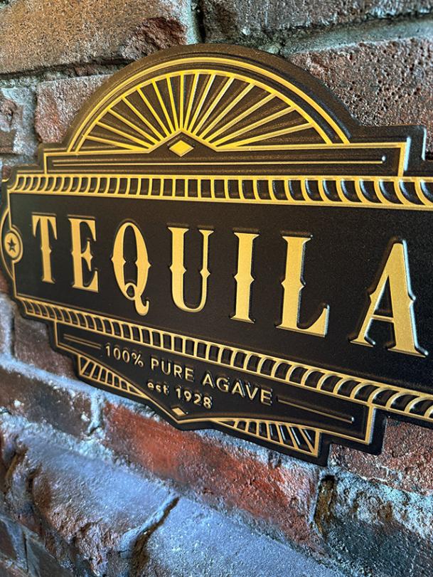古い建物の看板みたいなお酒の看板 (テキーラ) エンボスティン ティンサイン ブリキ看板