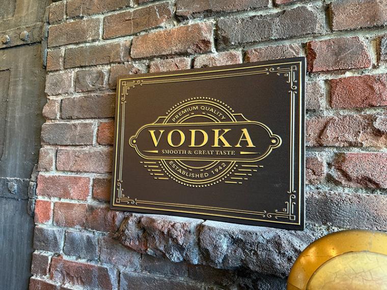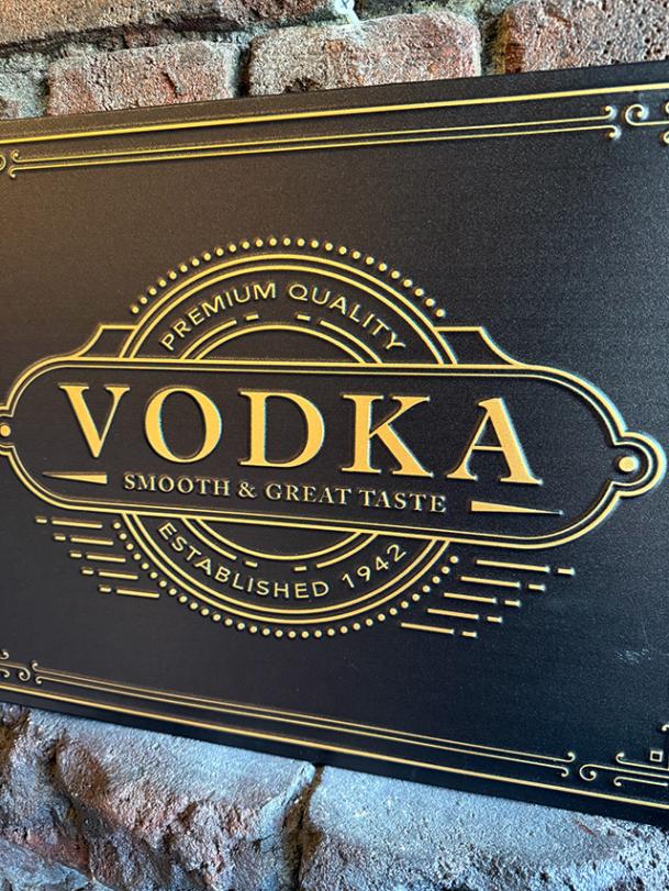 古い建物の看板みたいなお酒の看板 (ウォッカ) エンボスティン ティンサイン ブリキ看板