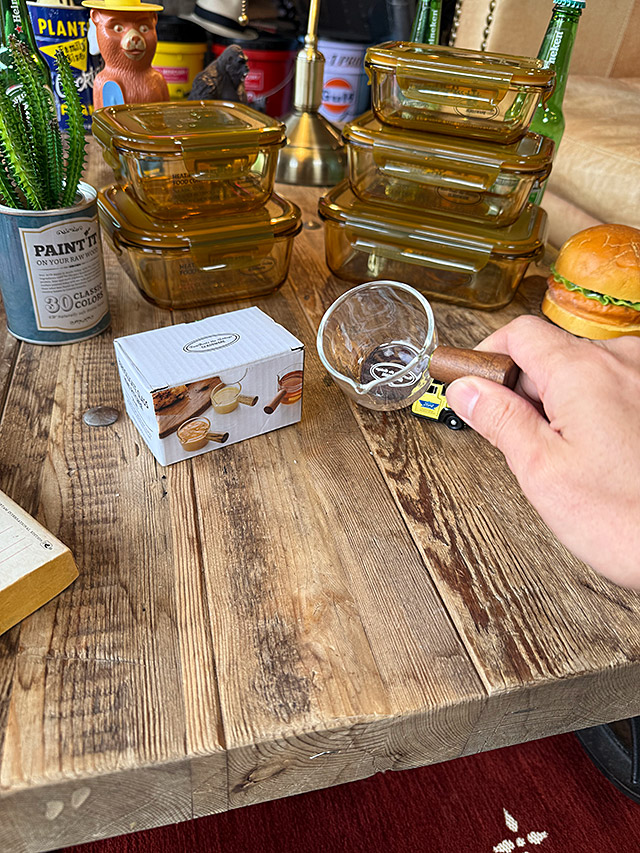 耐熱ガラスだから、コーヒーのミルクも、ドレッシングも、ホットソースもOK!