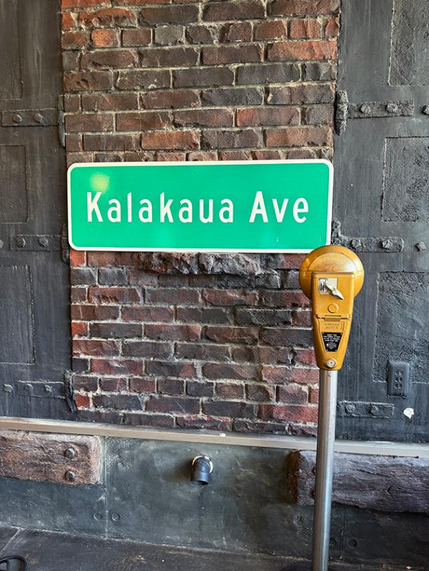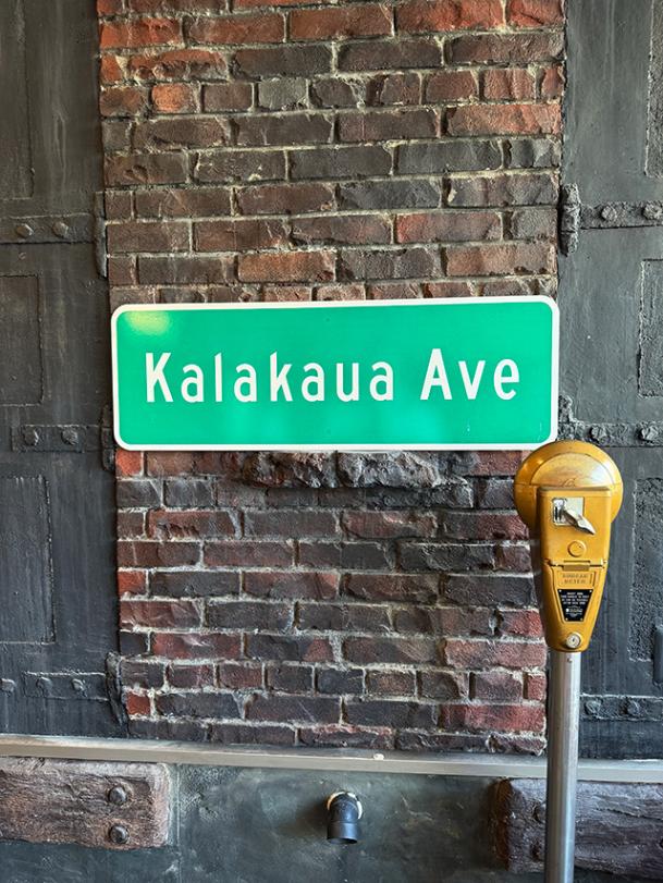 そう、ワイキキの中心を貫くメインストリートの本物の道路標識です。