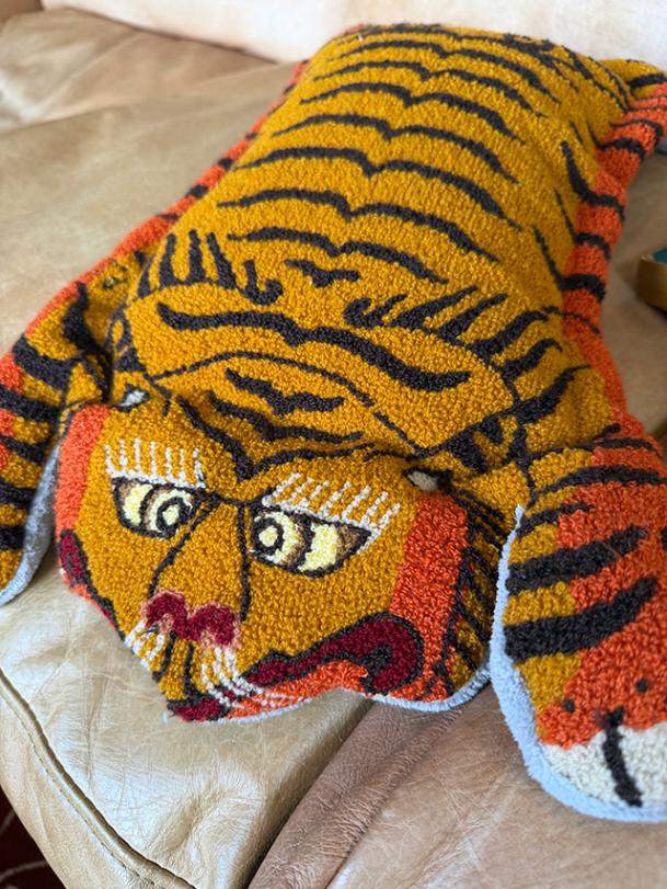 まるでヴィンテージラグのようなチベタンタイガーの中に、まさかの「湯たんぽ」が仕込まれてるんです。