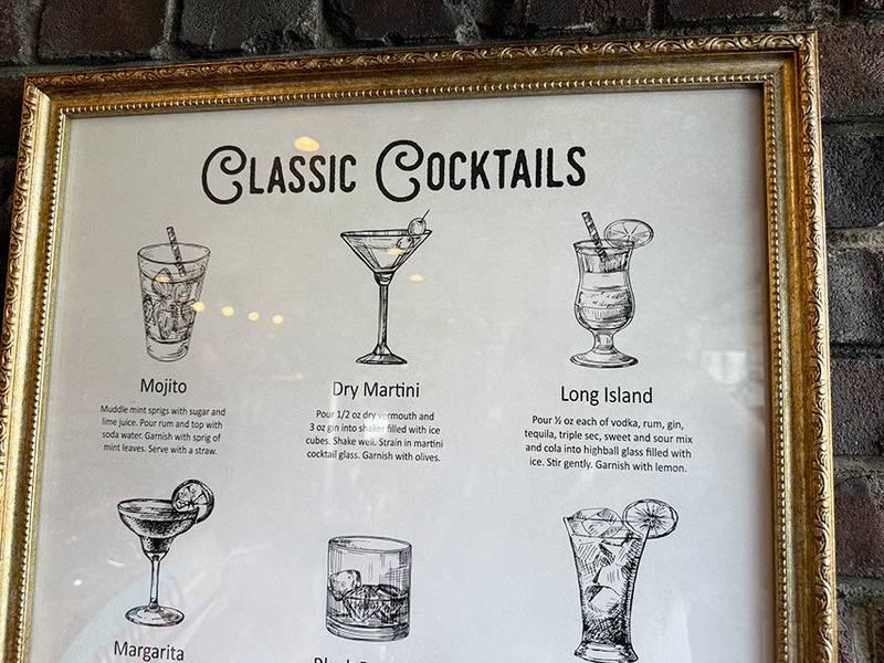光の反射に浮かび上がる手描きカクテルが、一日の終わりに「一杯どう?」と語りかけてくる感じ!
