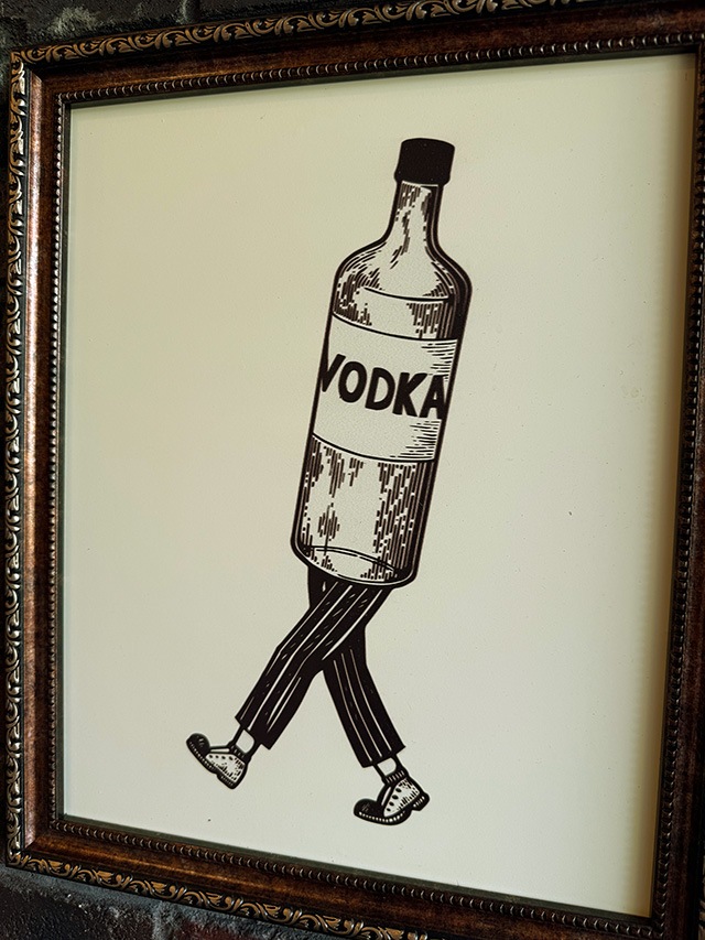 「お酒がテーマ」のフレームアート (歩くウォッカボトル)
