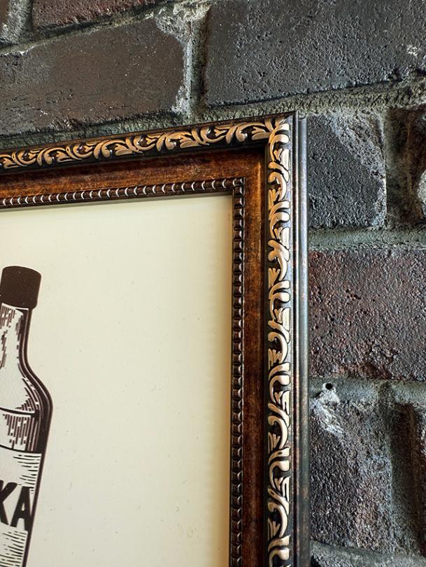 アンティーク調の額縁に収まったその姿は、外国の古いバーの一角に掛かっていそうな雰囲気でしょ?