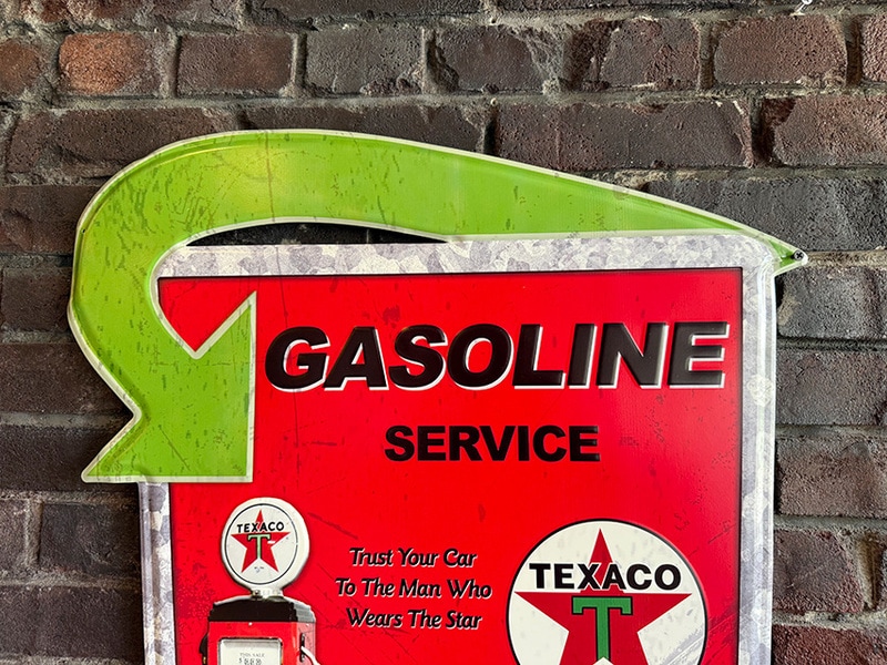 星のマークでおなじみのテキサコが手掛けた、往年のガソリンスタンド看板をモチーフにしたエンボスティンサインです。