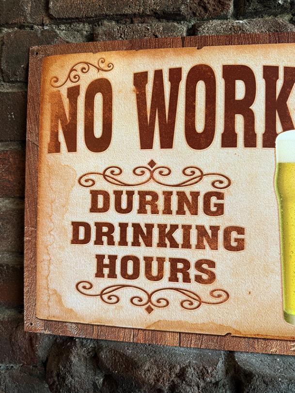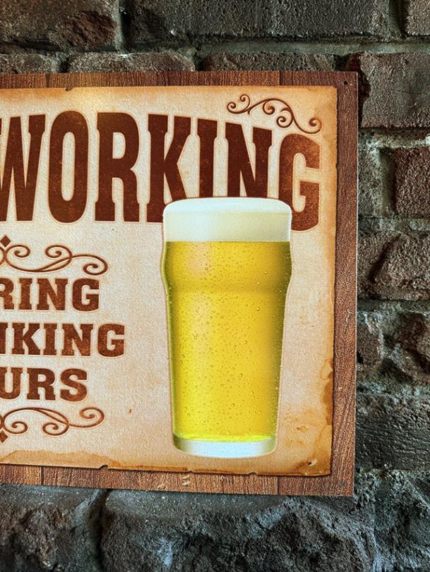 「飲む時間に働くな」 ビールを飲もうのブリキ看板 ジョーク看板