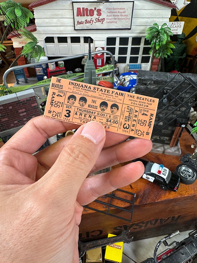 1964年9月3日、インディアナ・ステートフェアで行われた伝説のライブチケットを、まるっと再現したステッカーなんです。