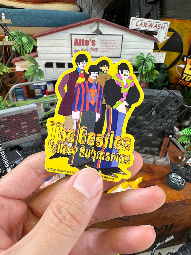 あのビートルズを、サイケでポップなアニメタッチに落とし込んだ伝説の世界から、4人がそのままステッカーになって登場です。