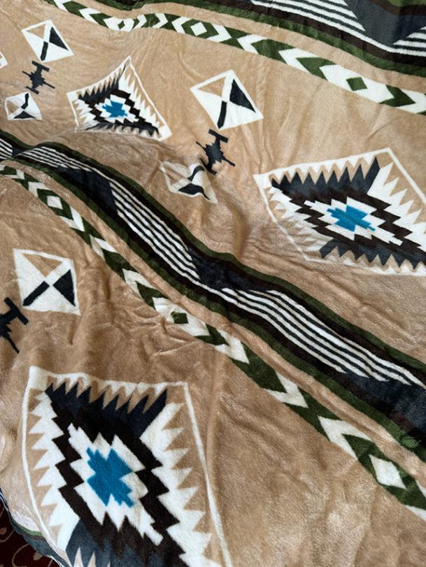 - ネイティブパターン フリースブランケット XLサイズ 140cm×200cm (サンド)