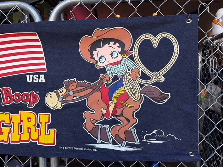 ウエスタンハットにチェックシャツ、ブーツ姿で颯爽と馬に乗るベティがもう完全に「アメリカンガールの象徴」になってます。