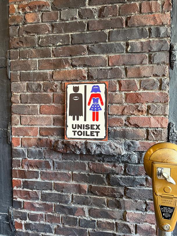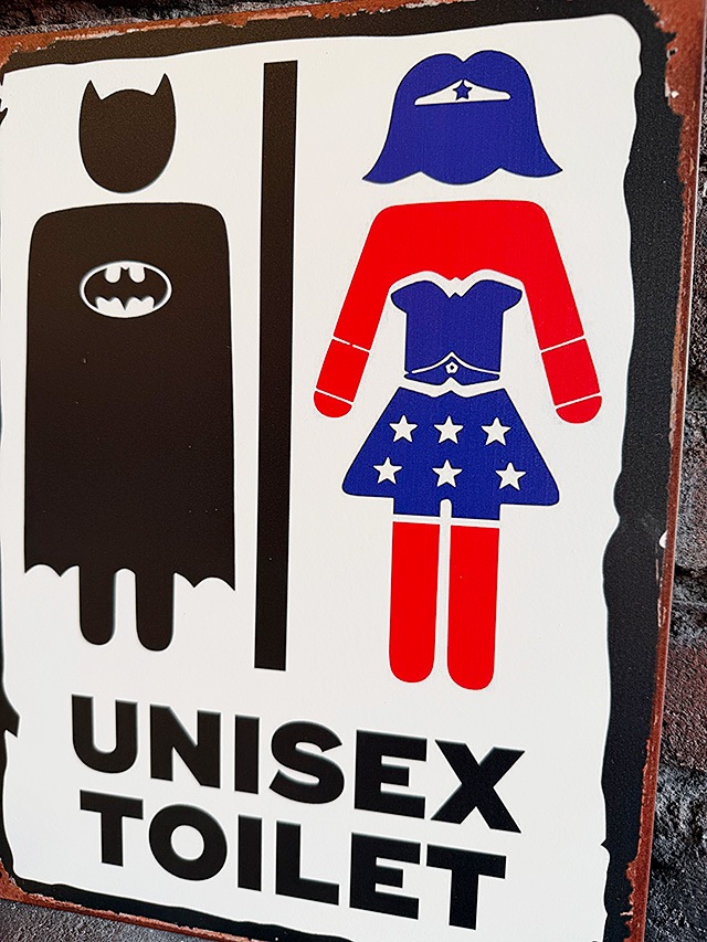 今回のはまさにその代表格、ユニセックストイレのブリキサイン。