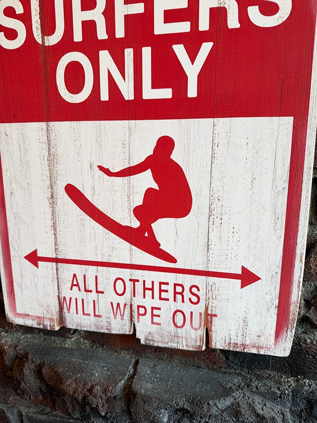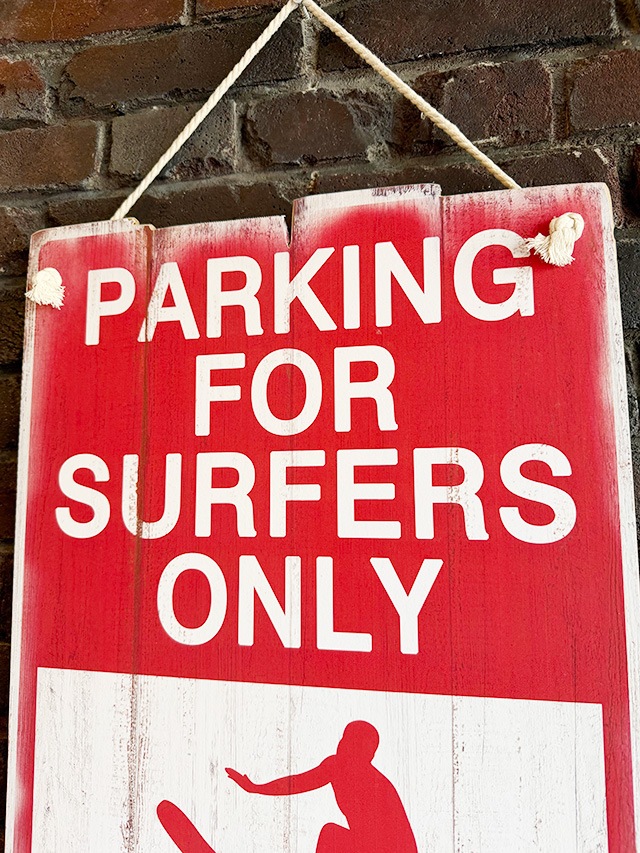 真っ赤にドンッと入った「PARKING FOR SURFERS ONLY」(サーファー専用駐車場)