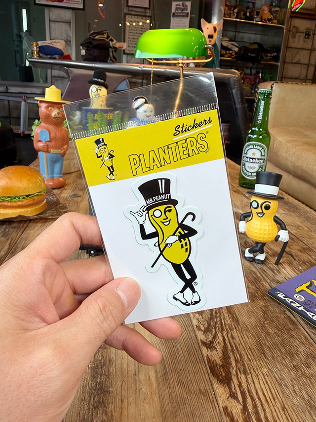ミスターピーナッツのステッカー、アメリカ好きの心にズコーンと刺さる、そんなシリーズです(〃 ̄▽ ̄〃)
