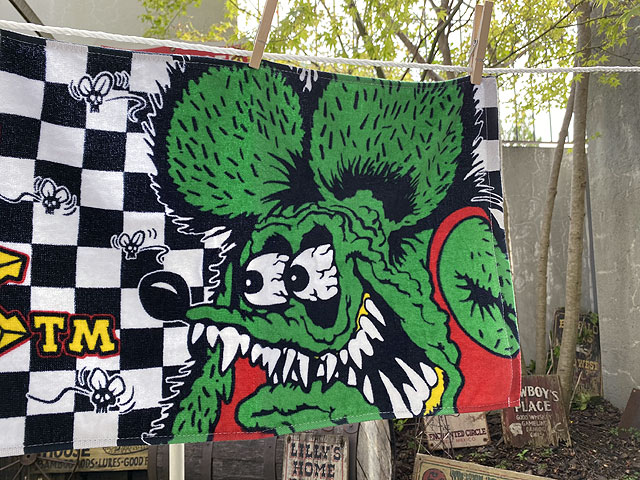 ありきたりのデザインじゃしっくり来ないって人に、他にない強烈な個性を放つラットフィンク仕様のフェイスタオルをお届けしますぜ!щ( ̄∀ ̄)ш