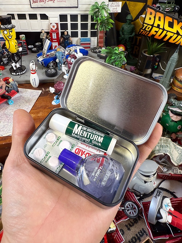 手に持つと「思ったよりちょうどいい!」ってなるサイズ感で、リップ、錠剤、目薬・・・・いわゆるポケット版・自分専用レスキューキットをそのまま詰め込める便利さなの!