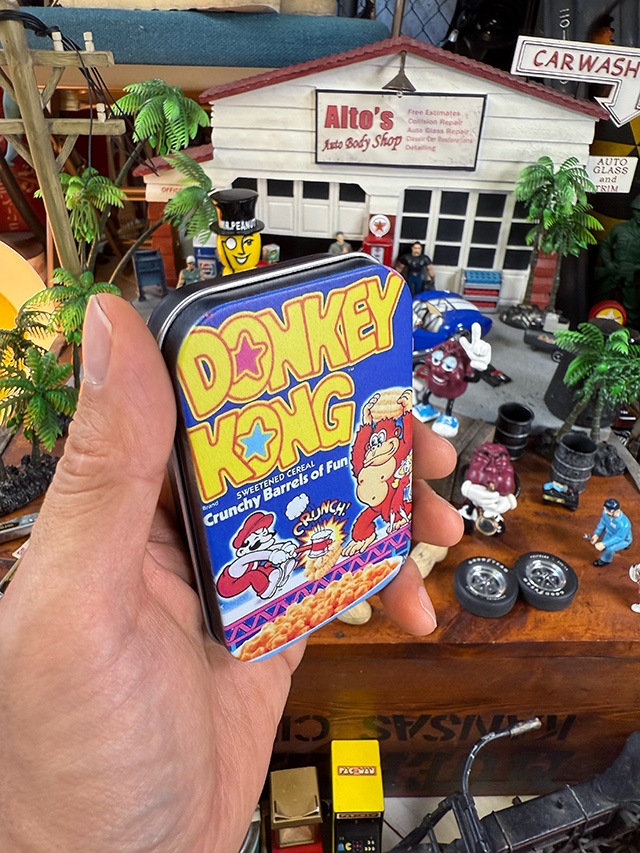 アメリカの朝食ノスタルジーをそのまま握りしめる、ドンキーコングのブリキ缶。