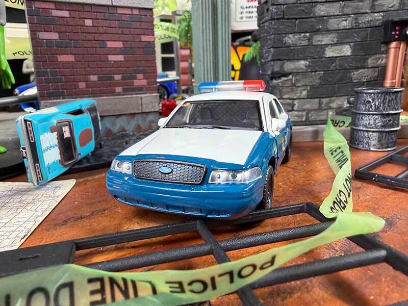 1/32スケールなのに、ちゃんと「保安官カーだ!」って一瞬でわかる造形力にしびれます。