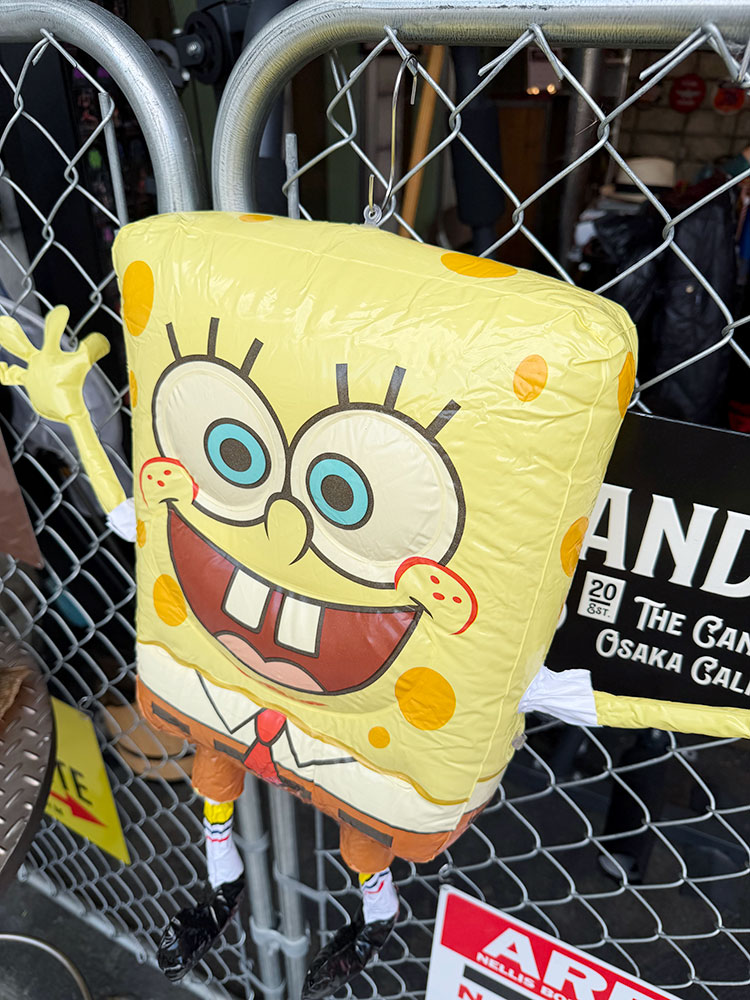 両手を広げて、今にも「ハーイ!」って声が聞こえてきそうなスポンジボブのインフレータブルです。